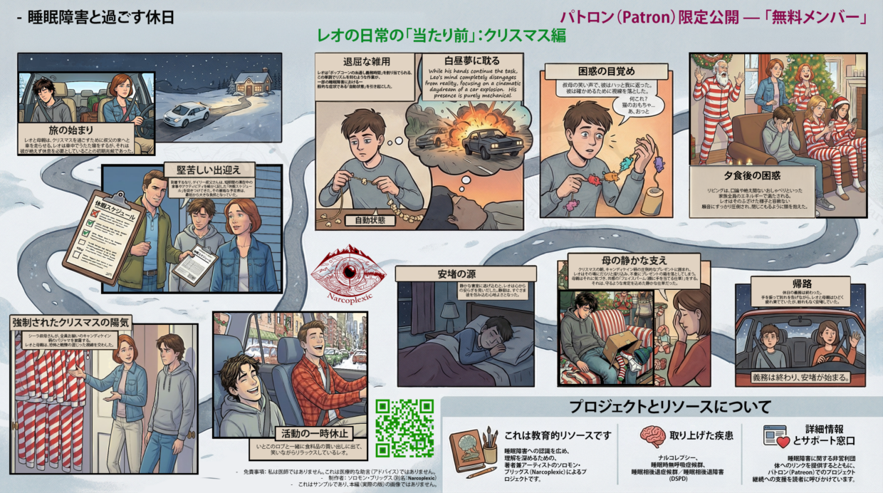 「レオの日常の『当たり前』:クリスマス旅行編」は、私のPatreonで「無料メンバー」の方々にご覧いただけます。英語、スペイン語、日本語に対応しています。