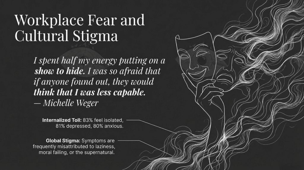 - The “Show”: Patients often spend half their energy “putting on a show” to hide their symptoms for fear of being seen as less capable in the workplace.